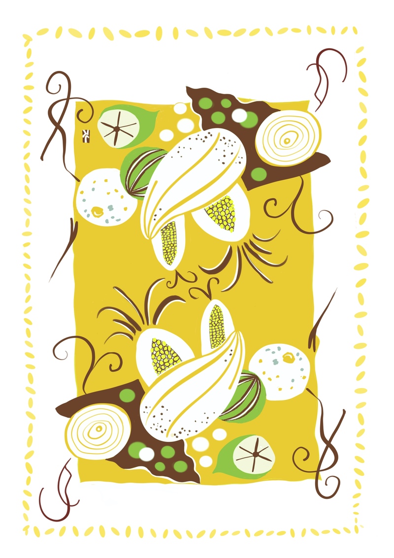 A new design! Fall vegetables in a vintage look.